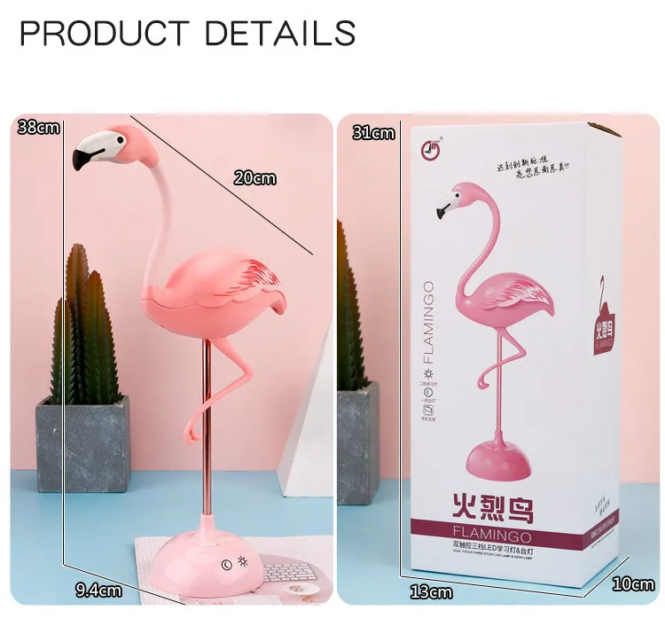 LED Flamingo Night Light Touch Reading Table Lamp for Children USB Charging Living Room Bedroom Decorative Light Lighting